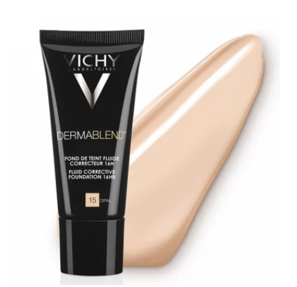 Use Vichy Dermablend Fluid Foundation to build up coverage on the face or body. Use with Vichy Dermablend SOS Concealer Stick and Setting Powder for best results